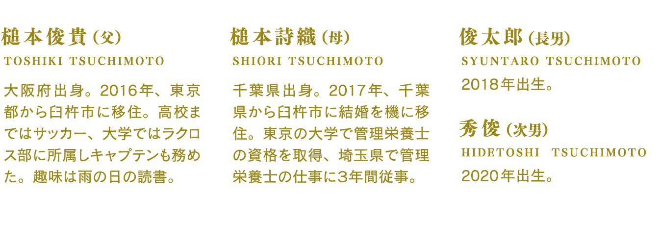 2017年に妻・詩織と結婚。2018年に俊太郎、2020年に秀俊という新たな宝物にも恵れ、農業と子育ては似ていると感じるようになりました。一筋縄ではいかず、良くも悪くもダイレクトな反応がある。